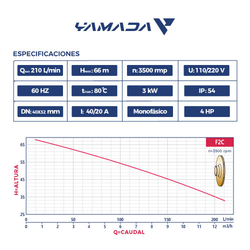 BOMBA DE AGUA 4 HP PARA RIEGO F2Cm32/200C 110/220V